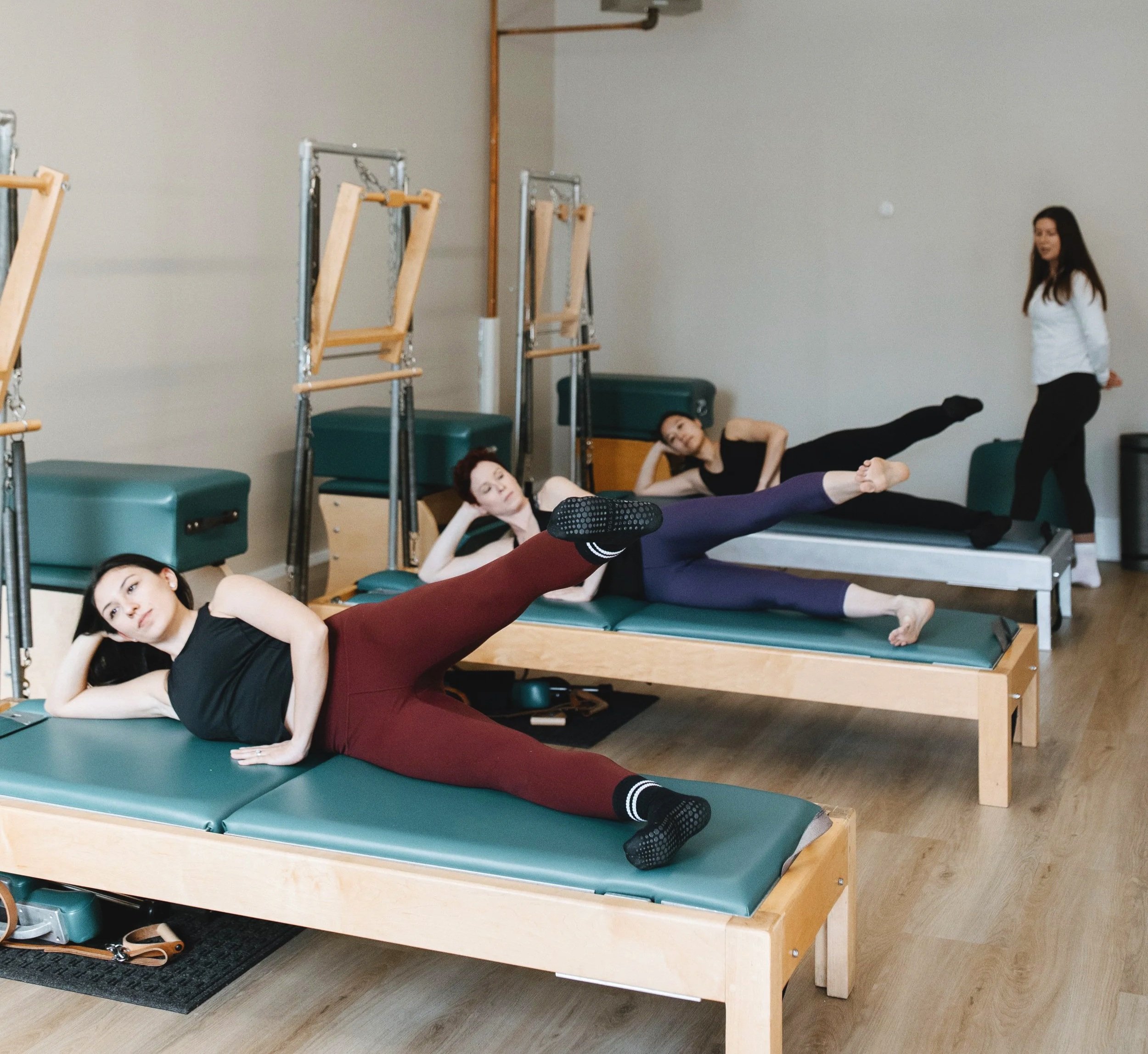 Group Pilates classes offer a fun, motivating environment where a small group works out together under expert guidance.